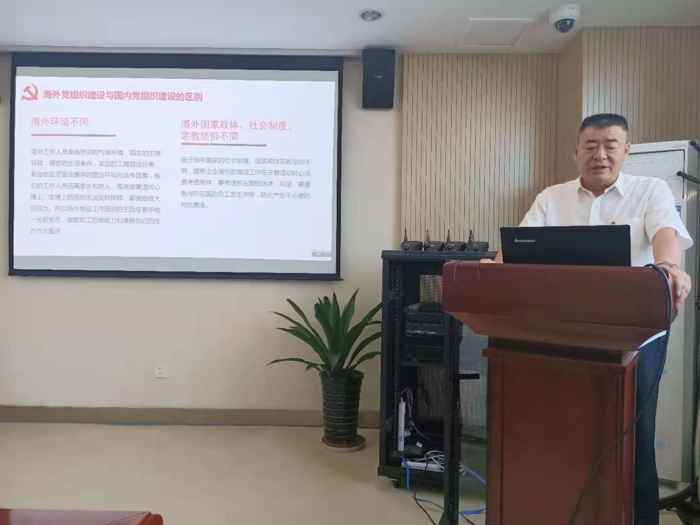 接下來(lái),由黨委委員李七一同志以《關(guān)于海外基層黨組織建設(shè)工作的調(diào)研匯報(bào)》為題,從海外黨組織建設(shè)與國(guó)內(nèi)黨組織建設(shè)的區(qū)別、如何做好海外基層黨建工作、加強(qiáng)海外基層黨建思想政治工作、創(chuàng)新活動(dòng),發(fā)揮黨員作用四個(gè)方面給支部全體黨員講授黨課。他指出海外市場(chǎng)前景廣闊,黨員同志要加強(qiáng)自身學(xué)習(xí),提高自身專業(yè)水平的及語(yǔ)言學(xué)習(xí)應(yīng)用水平,為公司開(kāi)辟新市場(chǎng),創(chuàng)造新的經(jīng)濟(jì)增長(zhǎng)點(diǎn)多做貢獻(xiàn)。