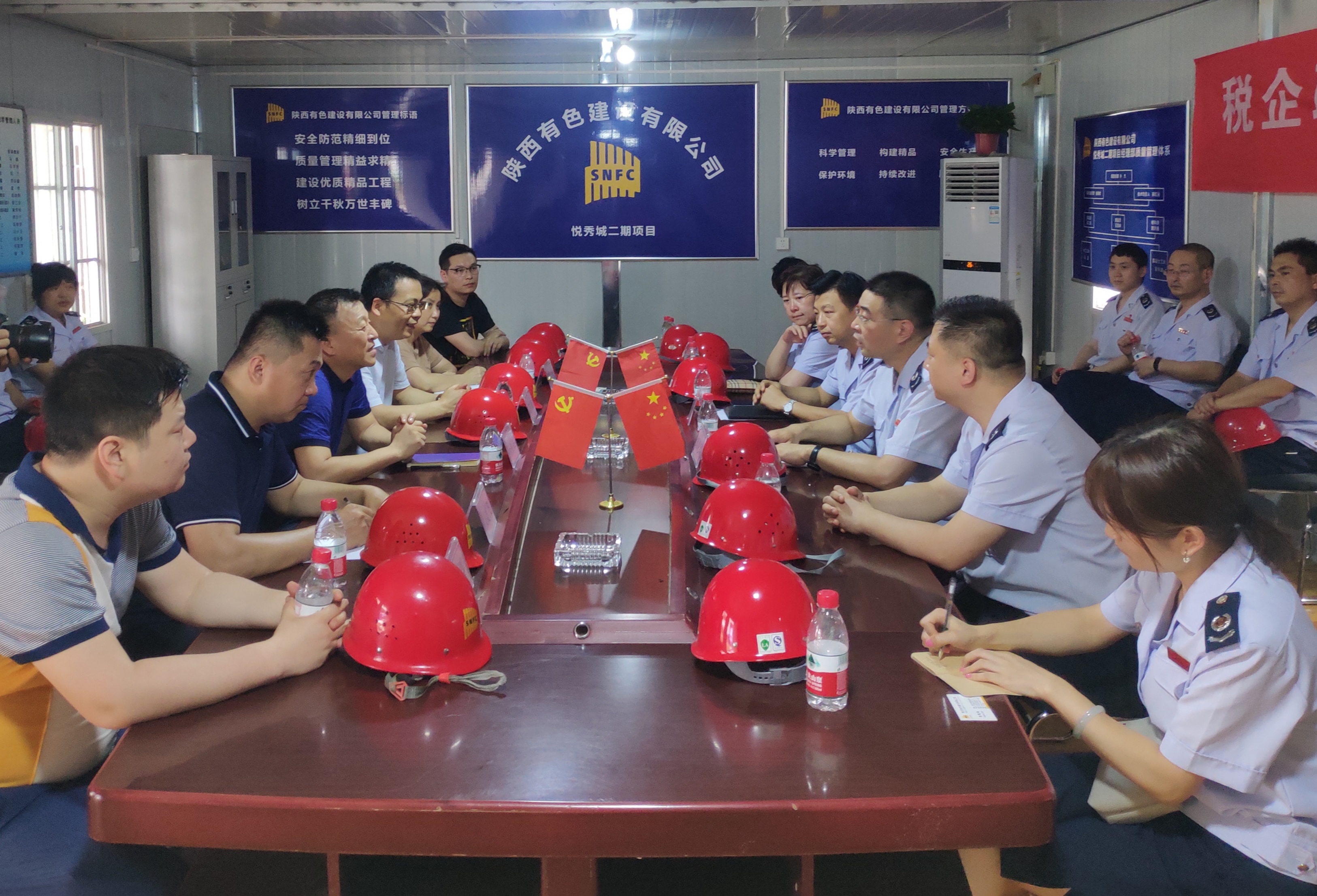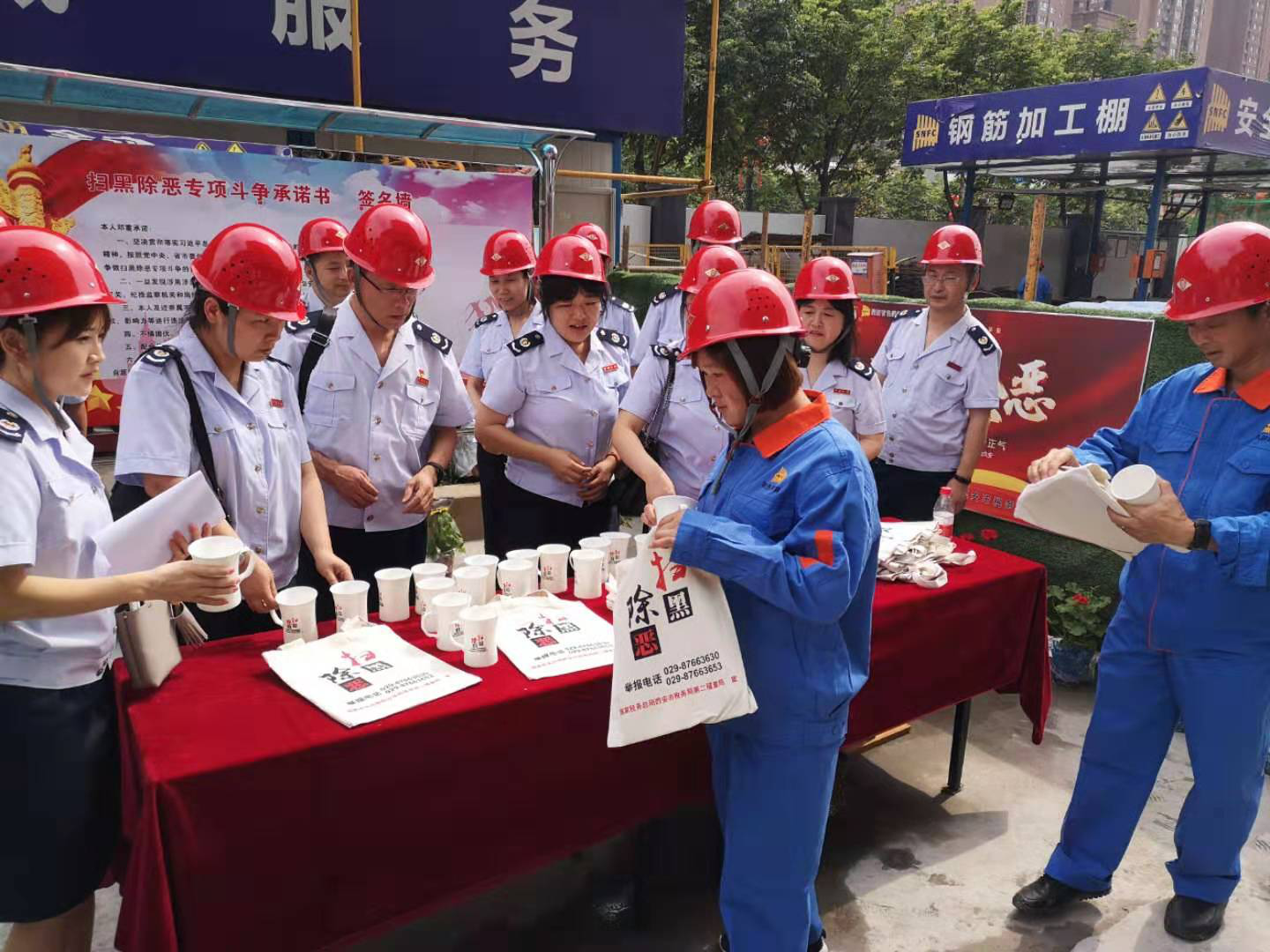 近日,西安市稅務(wù)局第二稽查局和我公司在西安鵬潤悅秀城二期2.1標(biāo)段項(xiàng)目部聯(lián)合舉行以“稅企聯(lián)動、掃黑除惡”為主題的宣傳活動,西安市稅務(wù)局第二稽查局副局長宋曉軍、公司總經(jīng)理?xiàng)蠲麾?、總會計師陳毓等兩家單位有關(guān)領(lǐng)導(dǎo)及項(xiàng)目施工管理人員參加了本次活動。